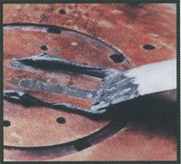 可搓捏雙組份膏劑。適用時(shí)間3分鐘,初固時(shí)間為10分鐘。固化后可進(jìn)行鉆孔、攻絲,涂油漆。適用于水箱及管道泄漏的緊急密修補(bǔ)。能夠?qū)缚p進(jìn)行平填;對(duì)鑄件的小開(kāi)裂進(jìn)行修補(bǔ)。對(duì)于大的螺栓孔進(jìn)行填充。